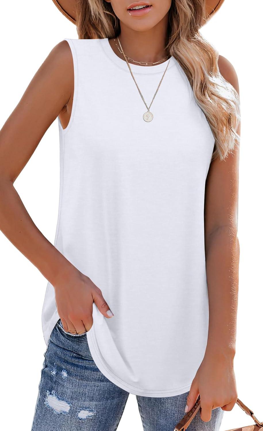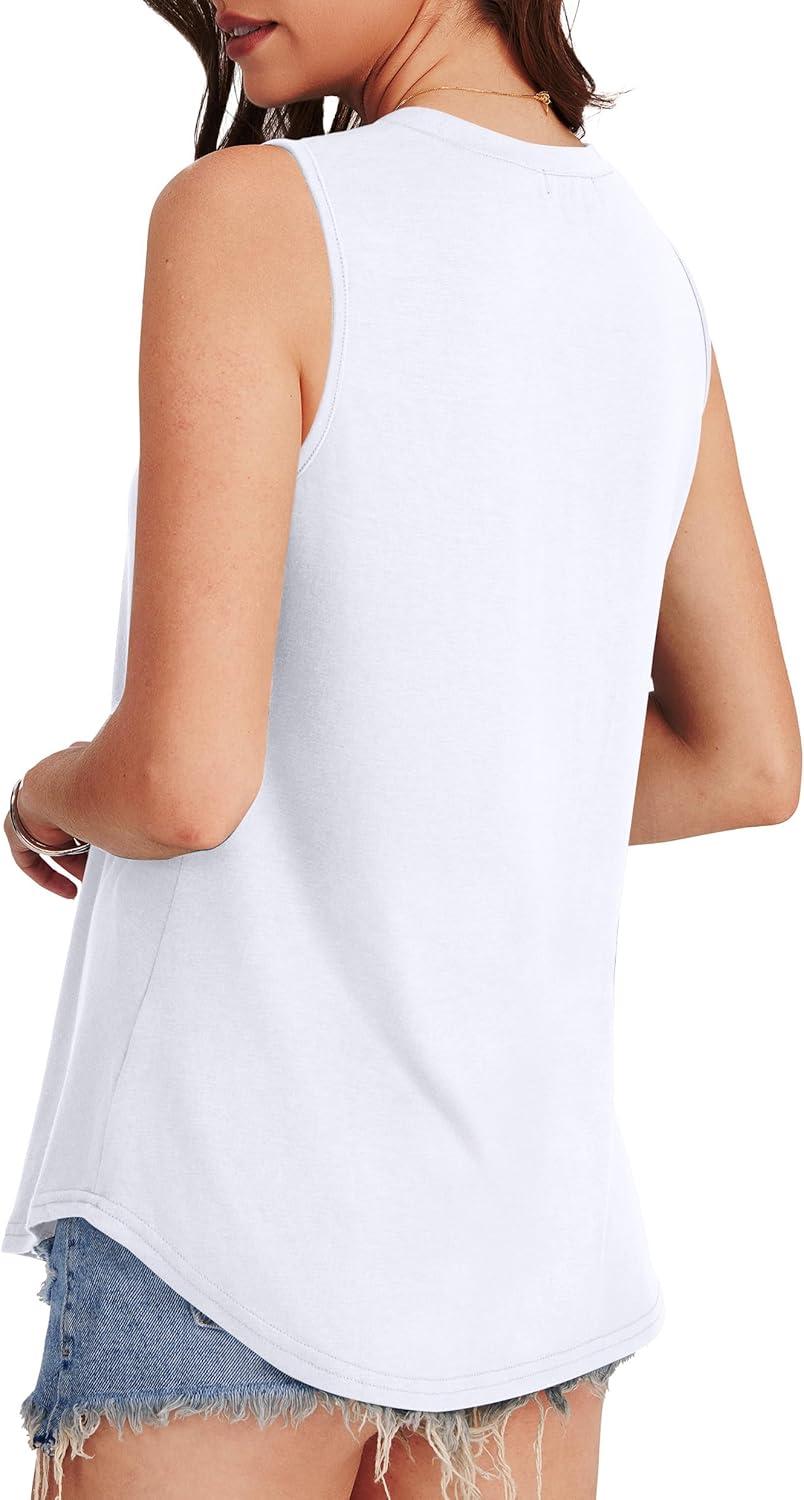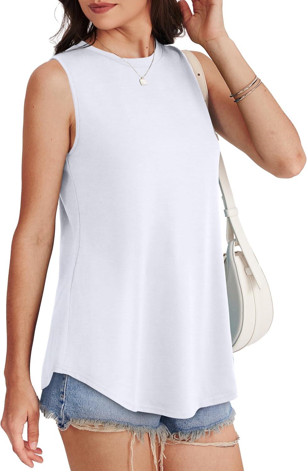 OFEEFAN High Neck Tank Tops for Women Loose Fit Sleeveless Top Summer Clothes Womens Tunic Tops to Wear with Leggings(A-white)